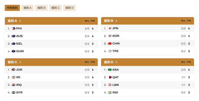 男篮世界杯亚洲区预选赛分组与积分/图片来源:FIBA官网