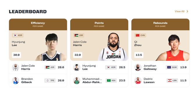 李贤重是世界杯亚洲区预选赛现阶段的“得分王”/图片来源:FIBA官网